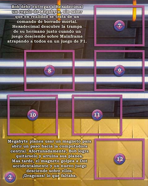 Megabyte plans to use a magnet to open a path to the Central Computer. Fortunately, Bob manages to take it and ruin his plans. Later, the magnet accidentally strikes Dot and a new game decends over them. Dragons! That's all they needed. |