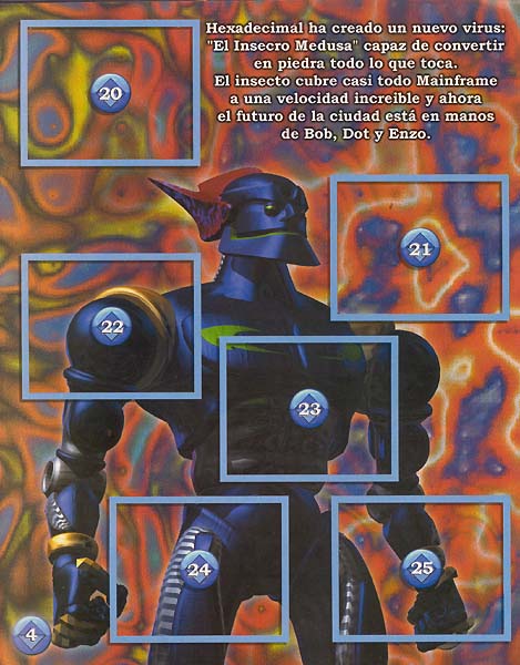 | Hexadecimal has created a new virus: "The Medusa Bug" capable of converting all it touches into stone. The bug covers almost all of Mainframe at an incredible speed and now the future of the city is in the hands of Bob, Dot and Enzo. |