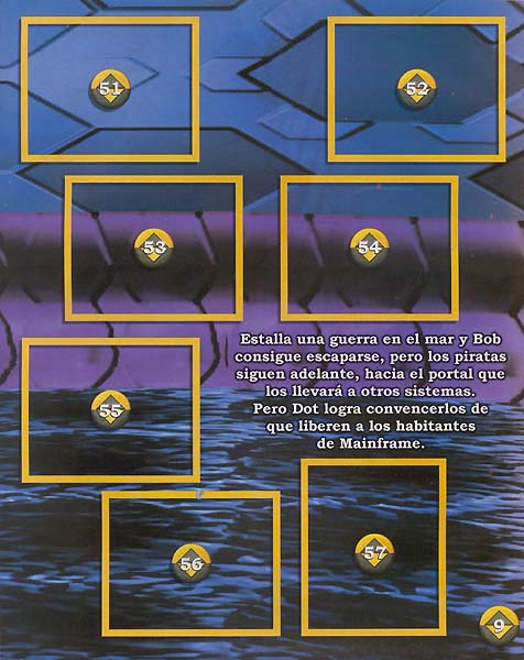 | A war on the sea breaks out and Bob gets to escape, but the pirates continue forward, making a portal which will take them to other systems. But Dot manages to convince them to free the inhabitants of Mainframe. |