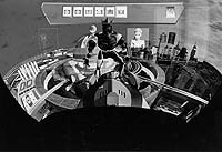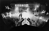 1997. Viewers sit in an 18-passenger vehicle mounted on an orthagonal motion