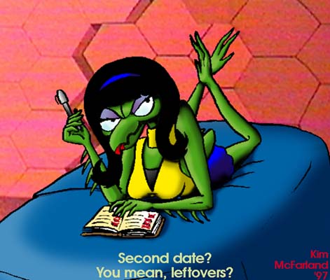Second Date? - A femme mantis in a pose inspired by ... well, you can guess what movie.