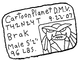 Brak at the Comedy Club Brak sitting with arms folded Brak learned a new trick! He can stand! Brak after a meeting with Chad Ghostal