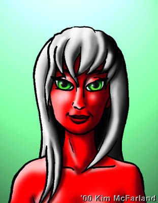 faceless cartoon babe tries out the Hex look.