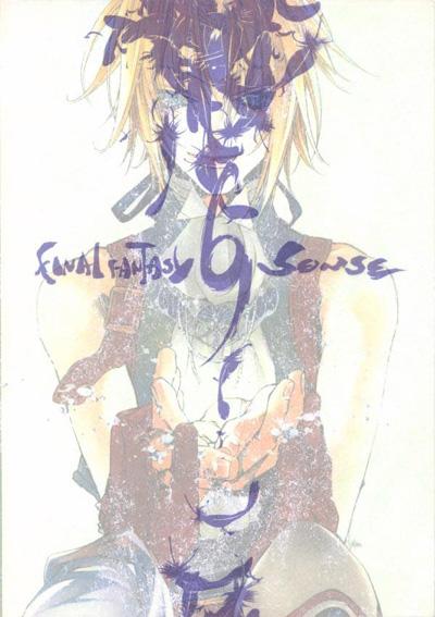 Hoo boy. This is not a typical doujinshi. Starting with the cover - what I've shown as the cover image is actually the cover with a semitransparent plastic dust jacket overlay. The printed cover image is Zidane cupping his hands around a light, with Vivi's hands around his. The overlay has the title and falling feathers. Nifty. The back cover is also a double image, but not quite as "poetic" - one drawing of Zidane & Kuja layered over another.