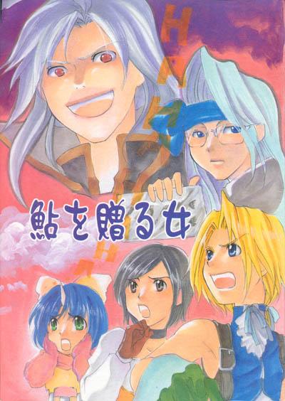 OK, enough of my scholarly chronicles. Here we have a shortish gag doujinshi. The first gag shows Blank and Zidane watching what looks like a TV show about doujinshi makers, which they find laughable. Another involves Quina cooking up frogs, and while I couldn't translate it, the image of Quina wearing lipstick will stay with me for a long time. Zidane, having trained his chocobo to Beak Level 99, has some alarming plans for it. And there are other gags, mostly featuring Zidane and Garnet, but with other characters like Vivi, Eiko, Ruby, Garland, Kuja, and Mikoto added in. There are also a pair of nice pinups, one by each circle.