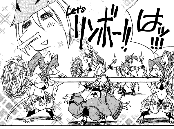 Here's an amusing gag doujinshi. The gags are based on situations on the game. The Cleryans must dance to ensure the integrity of their home - so they have a wild limbo party. Rat Boy is about to run Zidane, Quina and Vivi down, but Vivi instead trips him, punches him into the stratosphere, and becomes the Charles Atlas-style hero-of-the-beach... well, except that that's just a dream he's having after being run down by Rat Boy. (Quina was run down too, and dreams of eating the little punk.) Vivi, on seeing the Black Mages in the airship, asks if they aren't just the same as him, and instead of reassuring Vivi that that doesn't matter, Steiner seems all too ready to admit they are and exchange Vivi in on a bigger model.