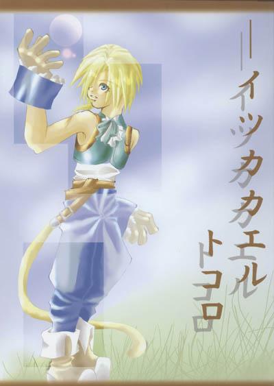 There are other serious stories, such as one involving Zidane and some of the other Tantalus members, Zidane and Garnet, Zidane and Kuja, and Zidane and what looks like an Eiko-age, tearful version of Garnet. Zidane returns to Garnet in the final story. The phrase "itsu kaeru tokoro" runs through all these stories, perhaps tying them together.