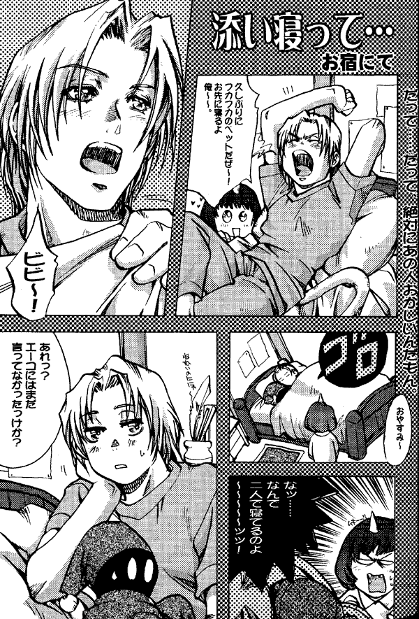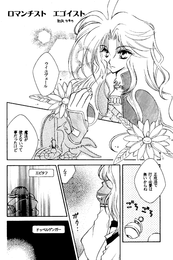 This doujinshi has a number of one to three page gag stories. Steiner gets a nosebleed and has to turn away when the cage plant starts getting a little too personal with Dagger (no, it doesn't go that far!); there is confusion over sleeping arrangements; some Final Fantasy 7 characters cross over into Gaia, and so on.