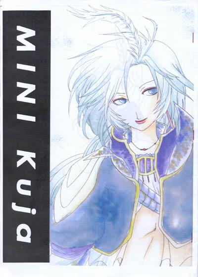 This doujinshi has a homemade feel to it. As in, the inner pages were photocopied and the front cover was likely printed on someone's color printer. The cover paper is thin, so you can see through to the image behind it. The pages are printed single sided, then folded in half with the crease outwards to make this doujinshi appear thicker than it is. The pages are often misaligned, resulting in art going over the center lines and visible spots where the copier saw the edge of the paper. The staples can snag you on the back side. The paper wasn't even tapped too closely into place before stapling, resulting in raggedy edges.