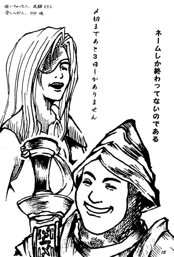 Another day, another gag doujinshi. Some of the gags are entertainingly strange, such as one in which Cid takes off his W-shaped moustache, attaches it to his forehead, and starts posing like a superhero. In another Salamander's hair rapidly grows out of control, turning into an afro the size of a hot air balloon.