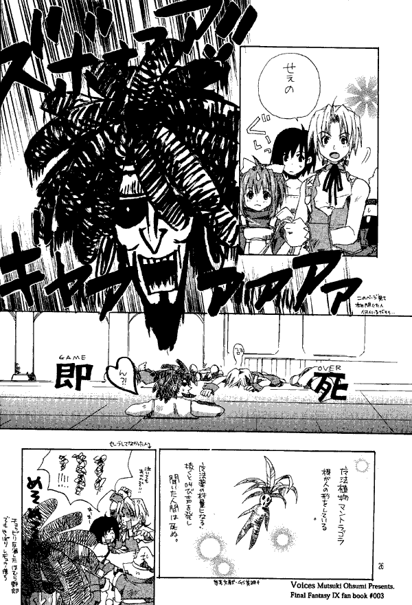 A fun doujinshi. I do wish the Ayuya doujinshi were not hand lettered, but then I wish none of them were. There's a little bit of cute Engrish on one page; Kuja exclaims "Jast a morment!!" right before he trances.